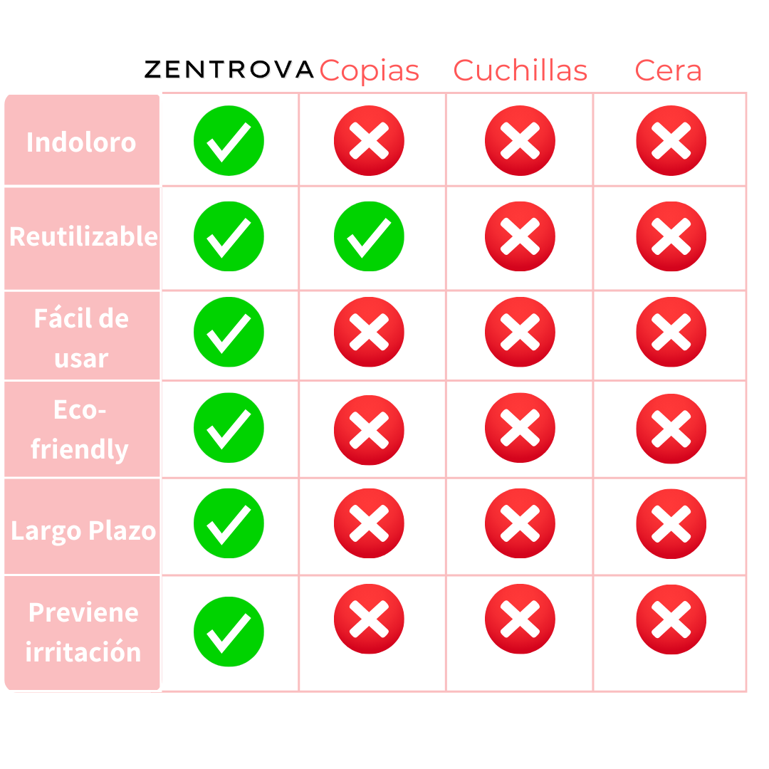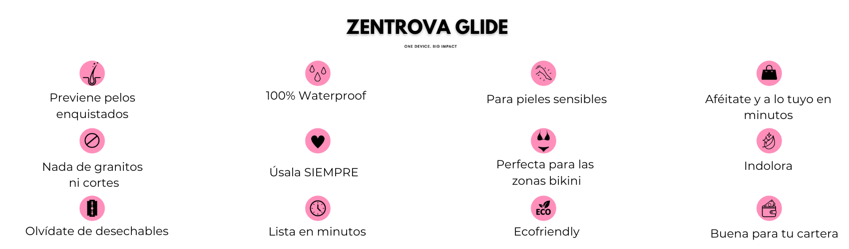 Entendemos que a veces un producto puede no ser la opción perfecta para todos. Por eso ofrecemos una garantía de devolución de dinero de 90 días, para que puedas probar La Zentrova Glide sin riesgos. Si no estás completamente enamorada de los resultados, envíanos un correo a zentrovacontact@gmail.com consulta nuestra política de devoluciones para conocer los siguientes pasos. ¡Queremos asegurarnos de que encuentres el afeitado perfecto para ti!